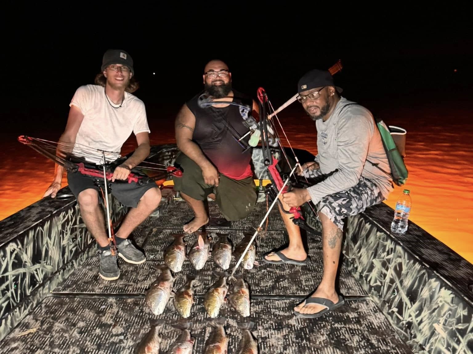 When the sun goes down in Lafitte, that's when the real action starts. Captain Jason sets you up with everything you need – quality bows equipped with AMS bottle reels that make arrow retrieval smooth and hassle-free. Those powerful LED lights transform the nighttime marsh into a clear underwater world where you can spot your targets moving through the shallows. This isn't about casting lines and waiting – you're actively hunting, bow in hand, watching the water for that perfect shot opportunity. The whole experience runs four hours, giving you plenty of time to get comfortable with the gear and find your rhythm. Best part? Jason handles all the fish cleaning and bagging so you can take your catch home ready for the table. Just bring your Louisiana fishing license (you can grab one online if you forgot), and Captain Jason provides bottled water throughout the trip. Feel free to bring some beer or wine if you want – just keep it to moderate amounts and no hard liquor or glass containers on the boat.